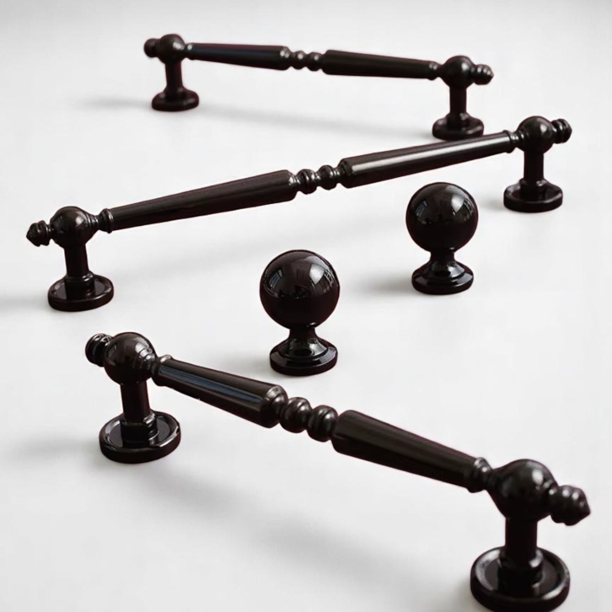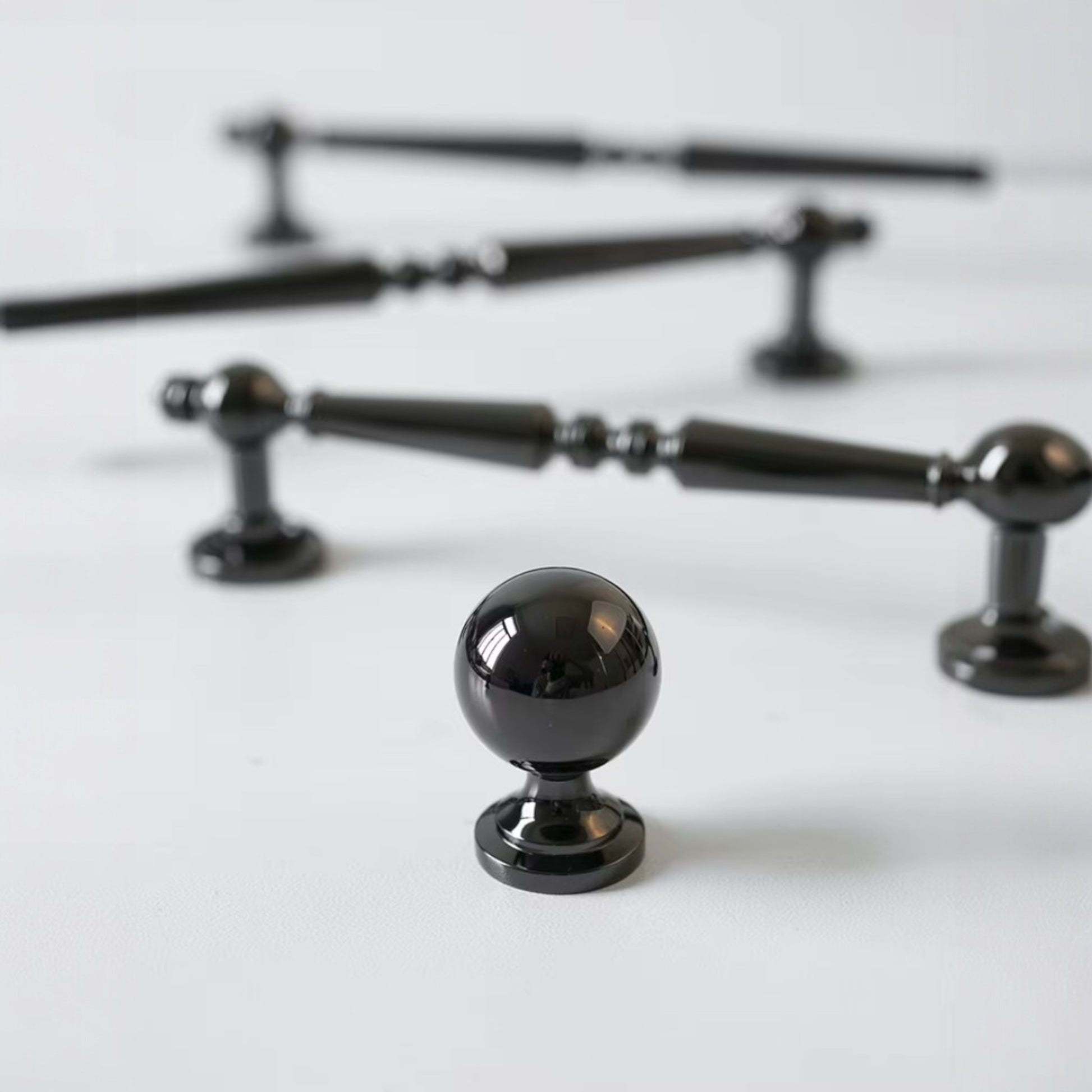 Tillverkad i massiv mässing med en polerad svart finish, passar den perfekt till allt från köksskåp och byråer till garderober och hallmöbler. Den rundade formen ger både komfort och elegans.
