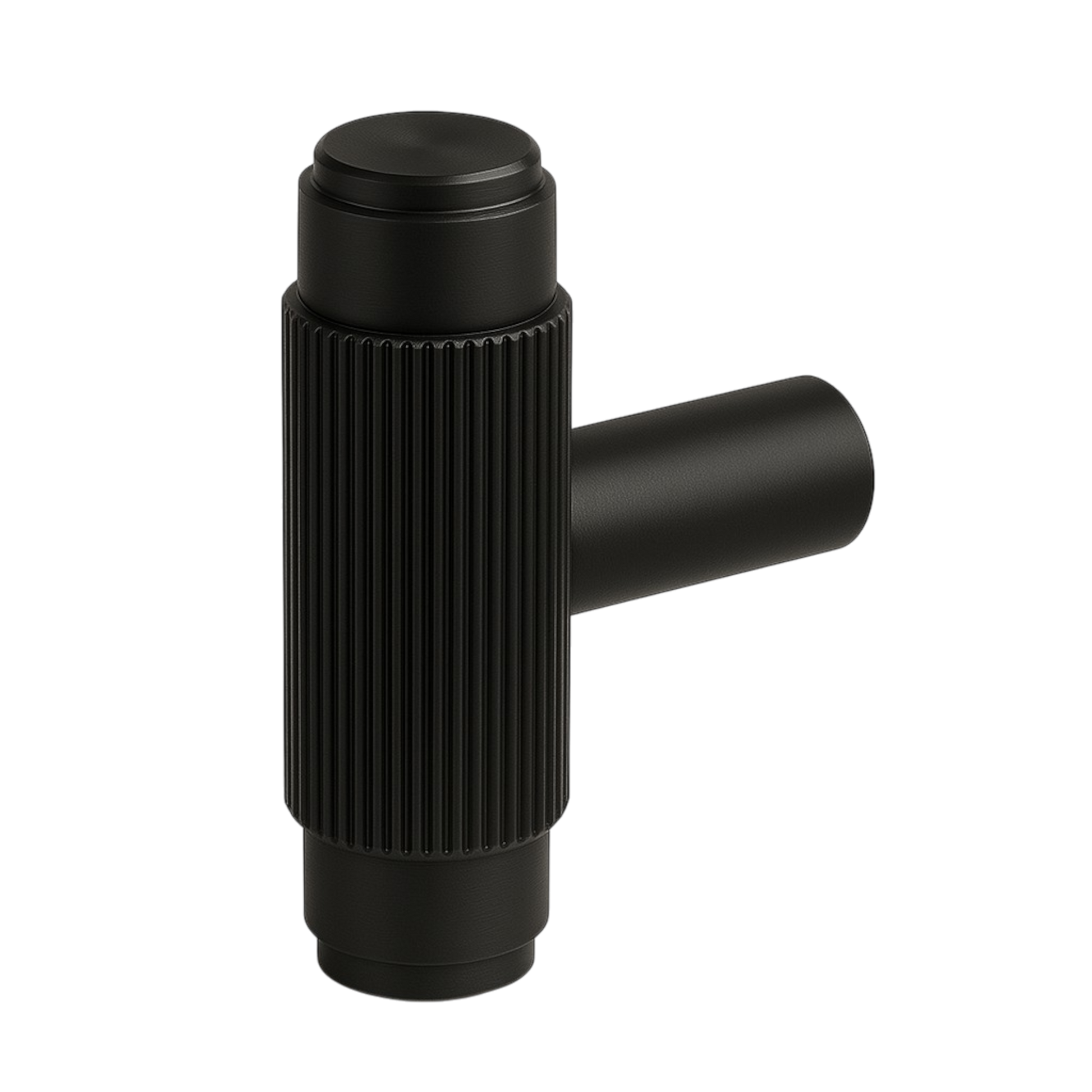 Uppgradera ditt hem med dessa lyxiga T-knopp i mässing! Den eleganta räfflade designen kombinerar estetik och funktion, vilket gör dem perfekta för kökslådor, garderober, byråer och skåp. Finns i både guld och svart för att passa alla inredningsstilar.