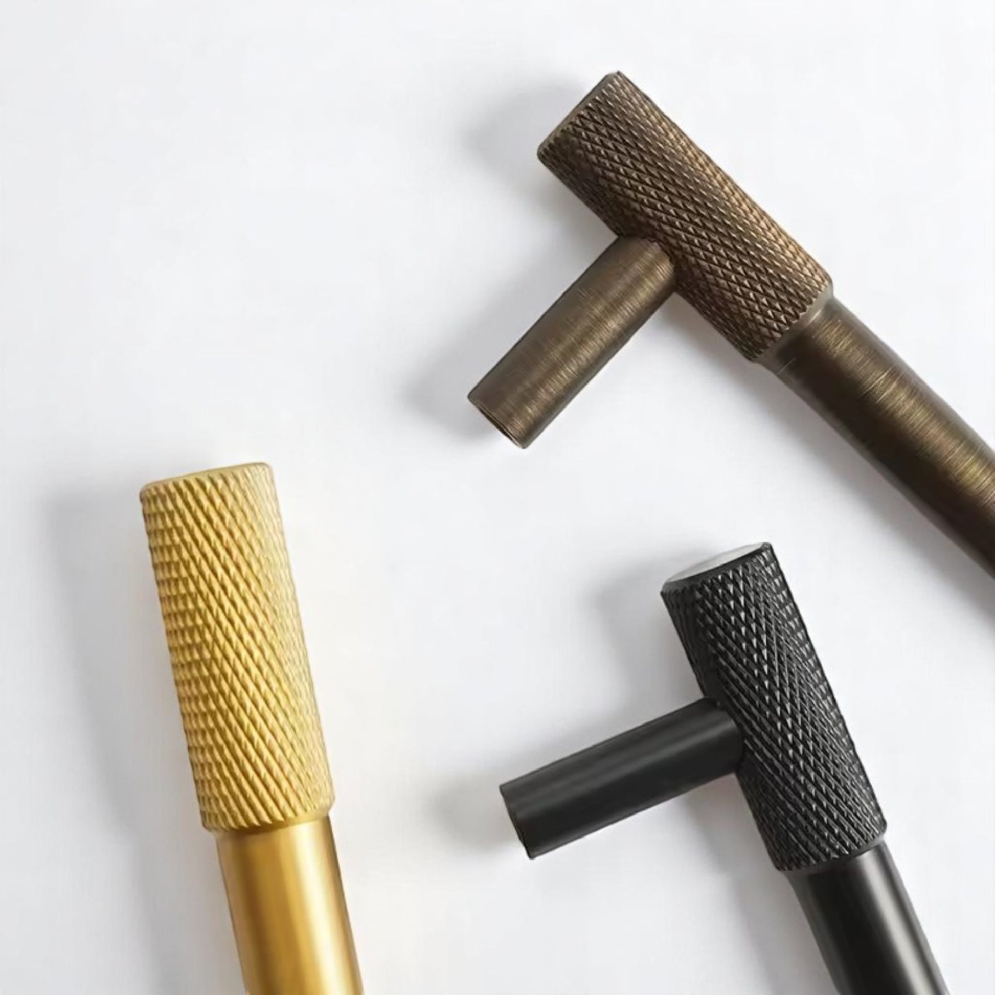 Dessa exklusiva handtag i Guld, brons och svart är perfekta för att förnya ditt kök, garderob eller byrå. Med sin räfflade yta ger de både ett elegant utseende och ett förbättrat grepp – en kombination av stil och funktion.