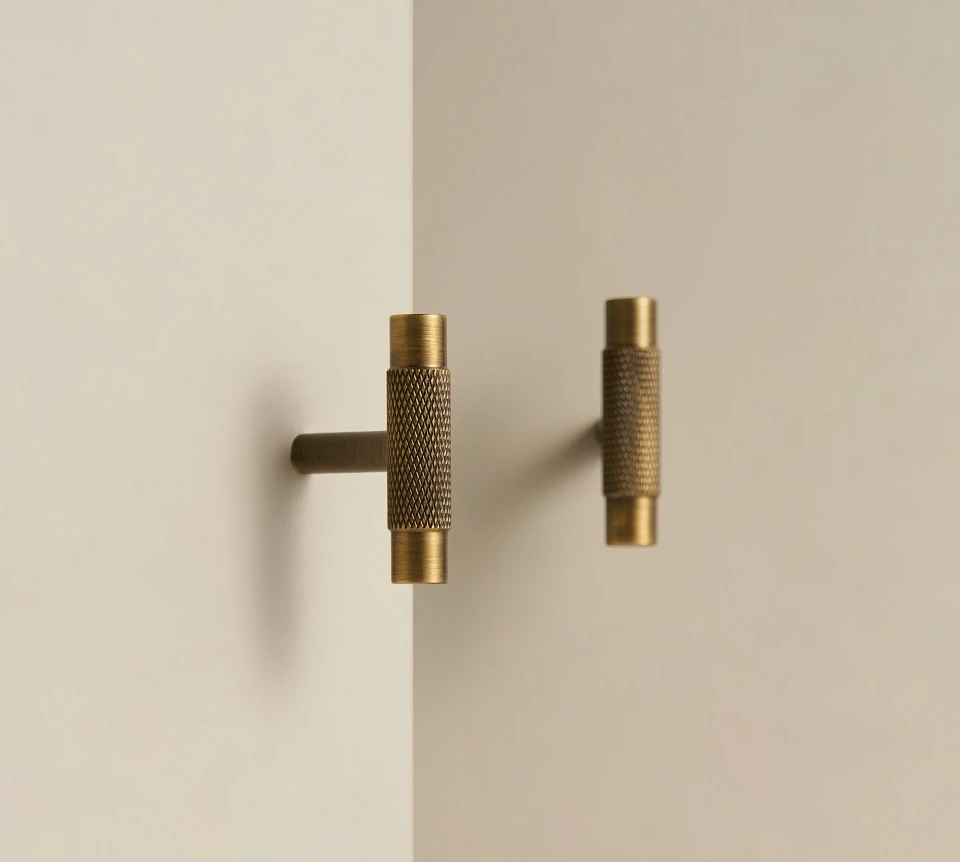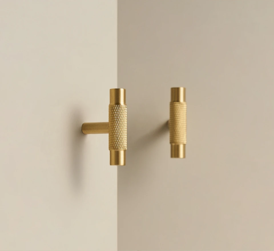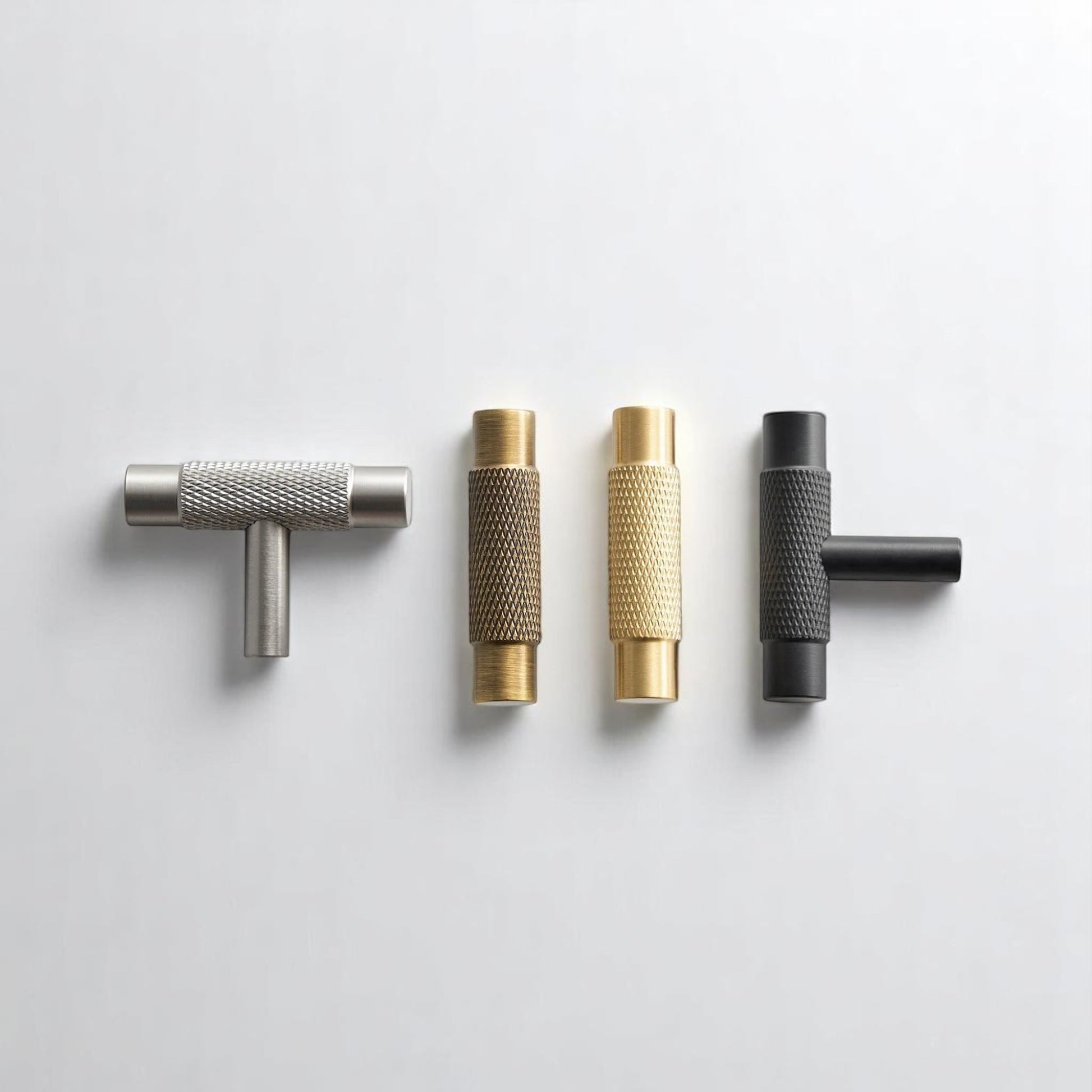 Dessa exklusiva T-knoppar i Guld, Brons, svart och silver är perfekta för att förnya ditt kök, garderob eller byrå. Med sin räfflade yta ger de både ett elegant utseende och ett förbättrat grepp – en kombination av stil och funktion.