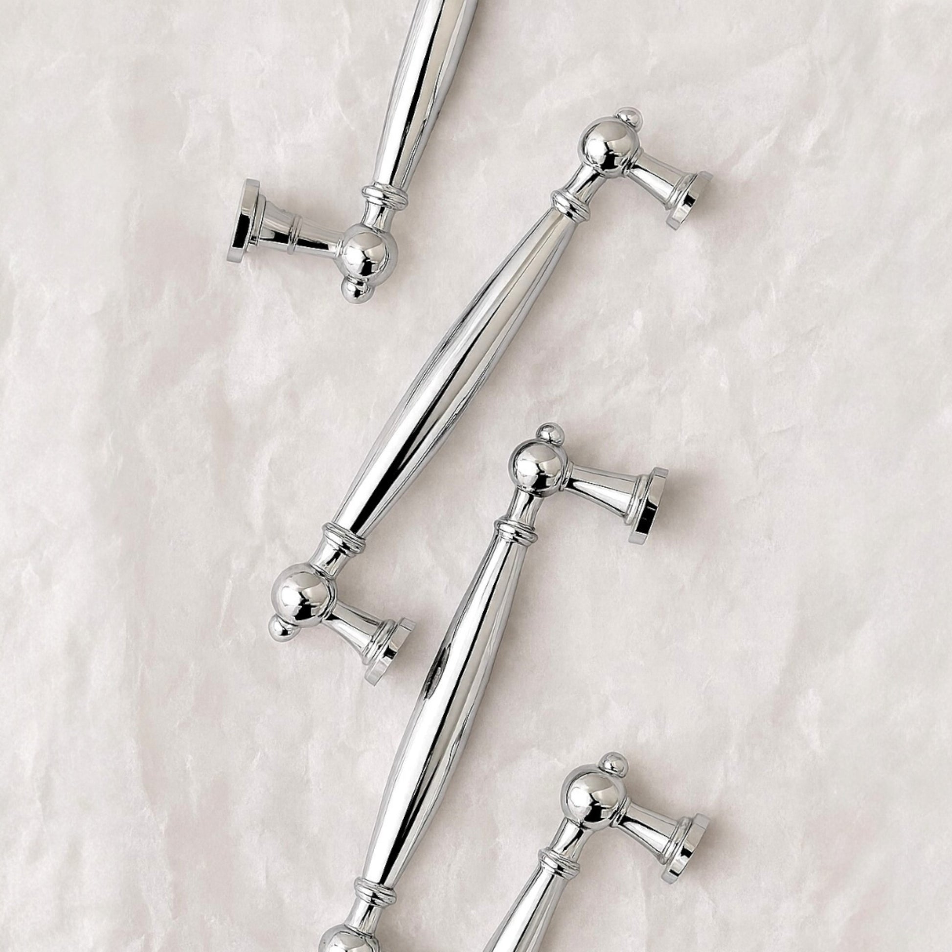 Dessa eleganta och tidlösa skåphandtag i silverfärgad mässing ger dina möbler en lyxig och sofistikerad touch. Perfekt för kök, garderober, byråer och andra förvaringsmöbler. Tillverkade i högkvalitativ mässing för lång hållbarhet och en exklusiv finish.